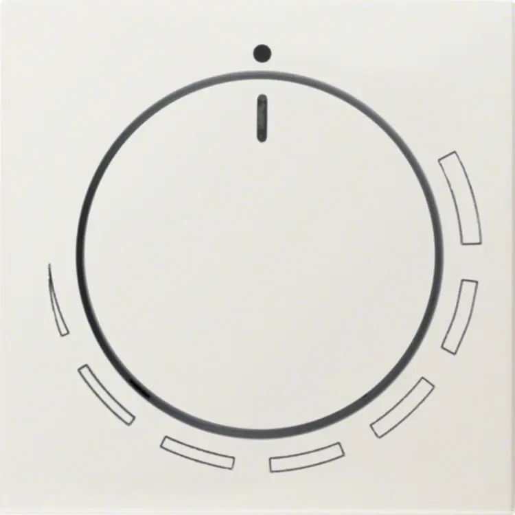 Hager Berker centraalplaat met draaiknop en opdruk (boogvormige schaalverdeling). Geschikt voor toerentalregelaar of potentiometer met een asmaat van 4 mm. Exclusief binnenwerk en afdekraam. Serie: S1/B3/B7, kleur: crème glans.