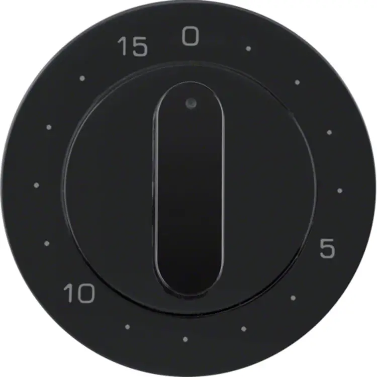 Hager Berker centraalplaat met draaiknop, voorzien van opdruk. Geschikt voor 15-minuten tijdschakelaar 2040. Exclusief binnenwerk en afdekraam. Serie: R1/R3/R8, kleur: zwart glans.