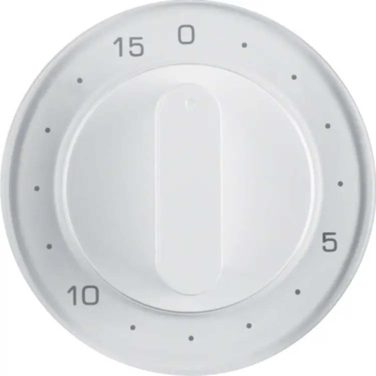Hager Berker centraalplaat met draaiknop, voorzien van opdruk. Geschikt voor 15-minuten tijdschakelaar 2040. Exclusief binnenwerk en afdekraam. Serie: R1/R3/R8, kleur: wit glans.