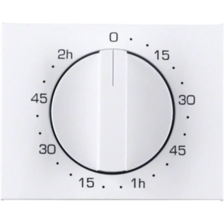 Hager Berker centraalplaat met draaiknop, voorzien van opdruk. Geschikt voor 120-minuten tijdschakelaar 2041. Exclusief binnenwerk en afdekraam. Serie: K1, kleur: wit glans.