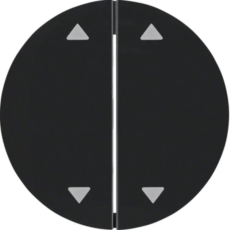 Hager Berker tweevoudige schakelwip (knop) voorzien van dubbele pijlsymbolen. Geschikt voor tweevoudige impulsdrukker 503404. Exclusief binnenwerk en afdekraam. Serie: R1/R3/R8, kleur: zwart glans.