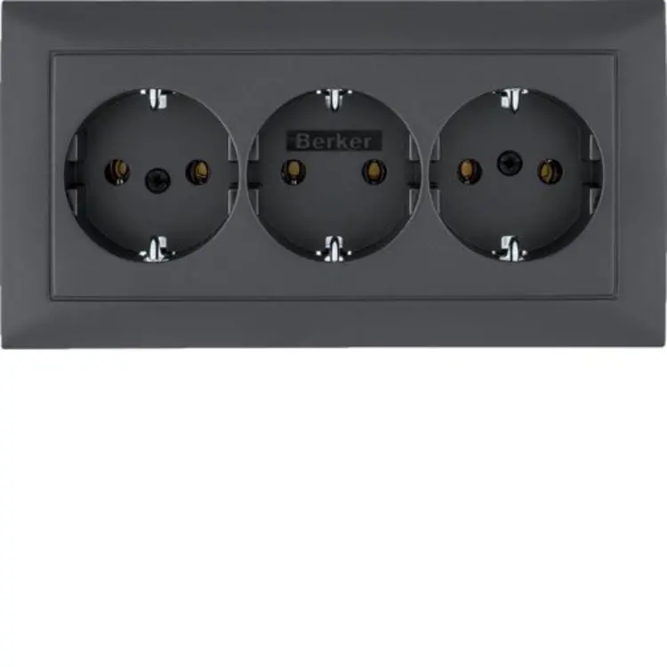 Berker wandcontactdoos 3-voudig randaarde compleet voor wandgoot S1 antraciet mat (47661949)