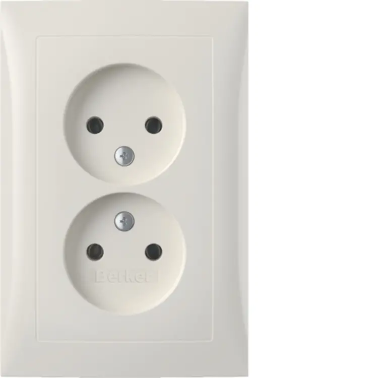 Berker wandcontactdoos 2-voudig zonder randaarde kindveilig voor enkele inbouwdoos S1 wit glans (47958989)