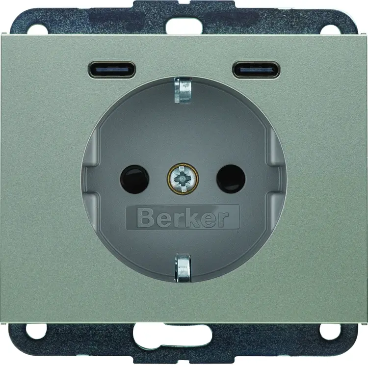Berker wandcontactdoos randaarde 2 x USB-C K5 edelstaal (48157004)