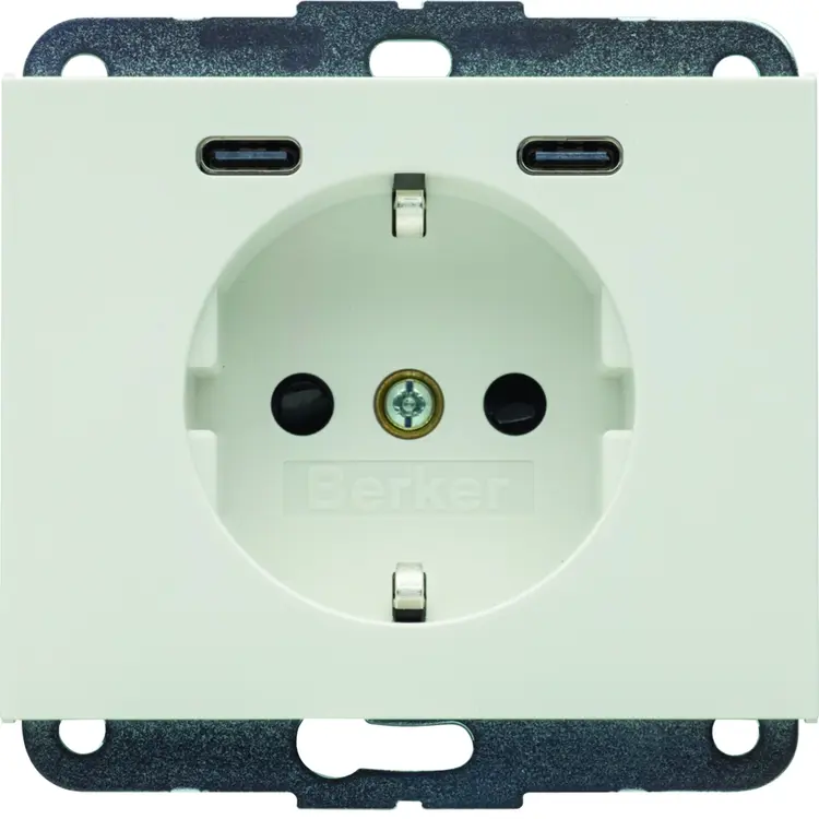 Berker wandcontactdoos randaarde 2 x USB-C K1 wit (48157009)