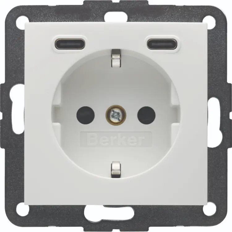Berker wandcontactdoos randaarde 2 x USB-C S1/B3/B7 creme glans (48158982)