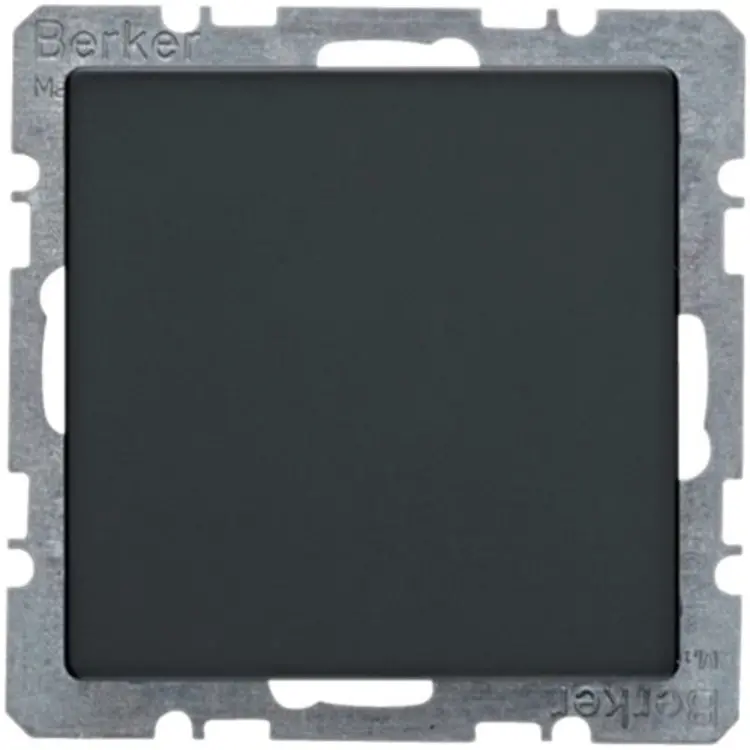 Hager Berker blinddeksel (blindplaat) inclusief draagframe. Voorzien van klauwbevestiging (spreidklemmen). Serie: Q1/Q3/Q7. Kleur: antraciet mat.