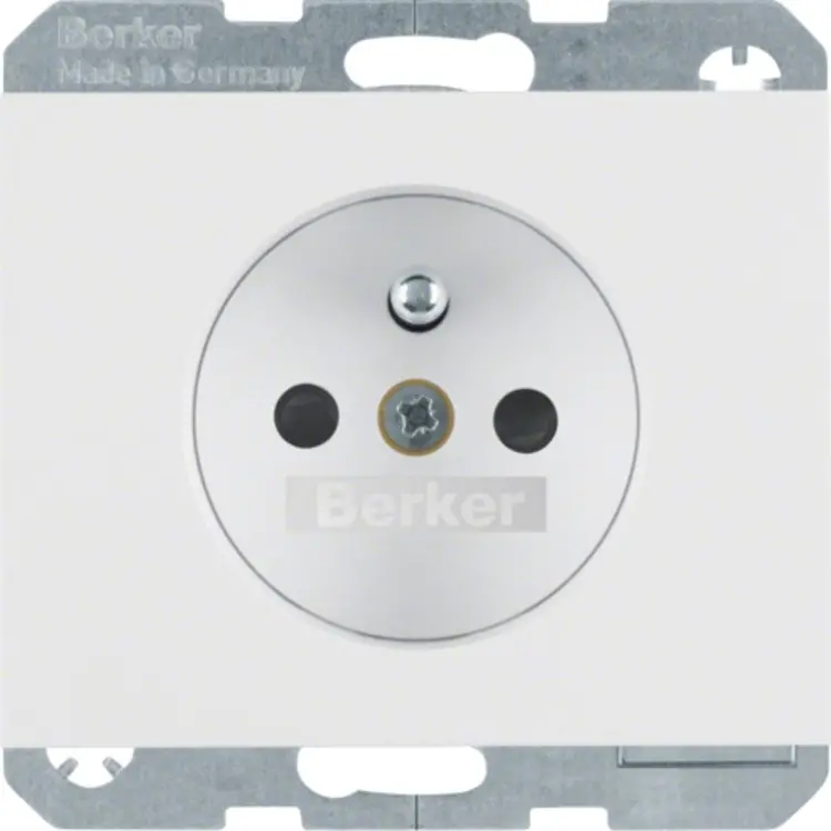 Hager Berker stopcontact met penaarde (België) en verhoogde aanraakbeveiliging (kindveilig). Voorzien van klauwbevestiging (spreidklemmen). Aansluiting bedrading: steekklemmen. Exclusief afdekraam. Serie: K1, kleur: wit glans.