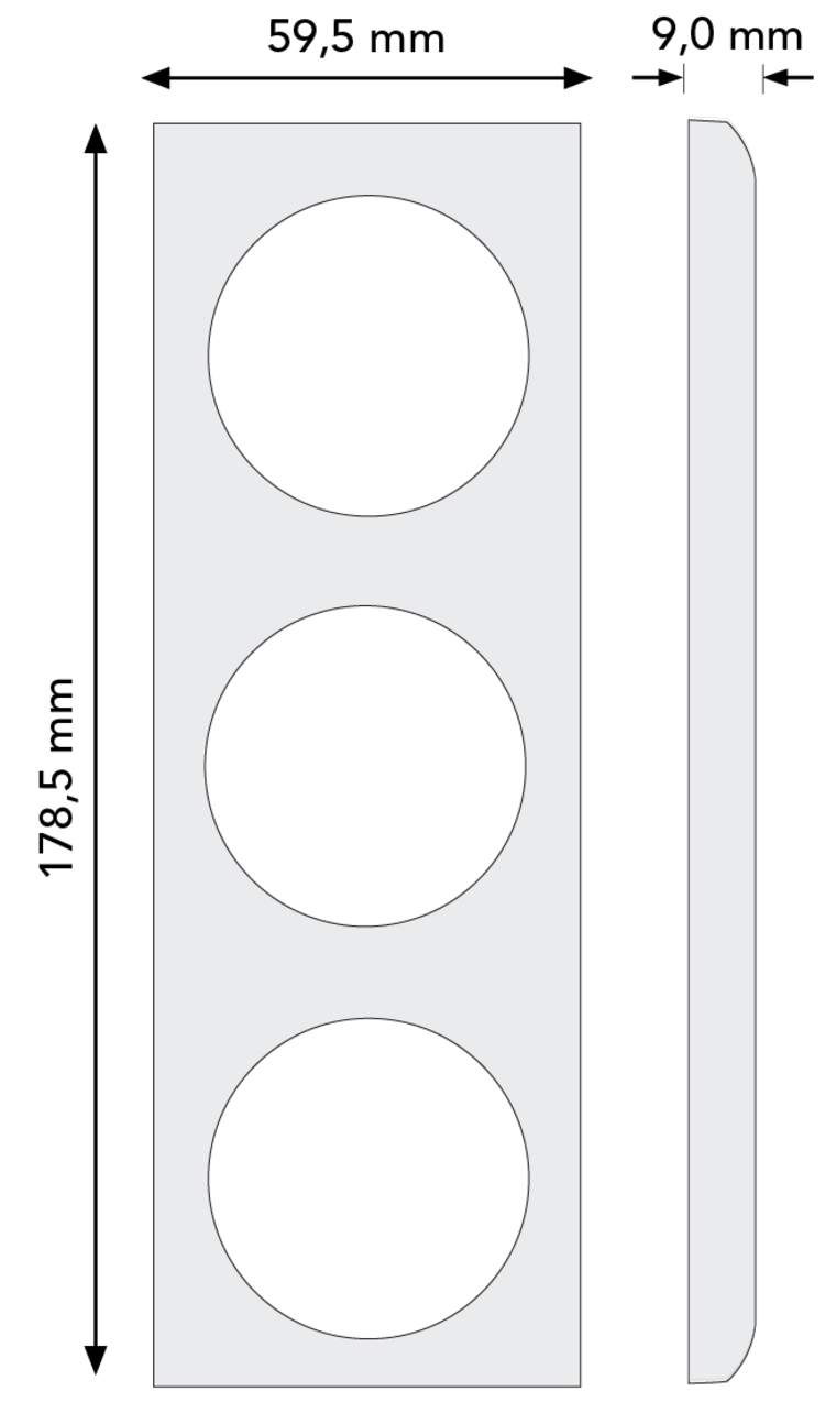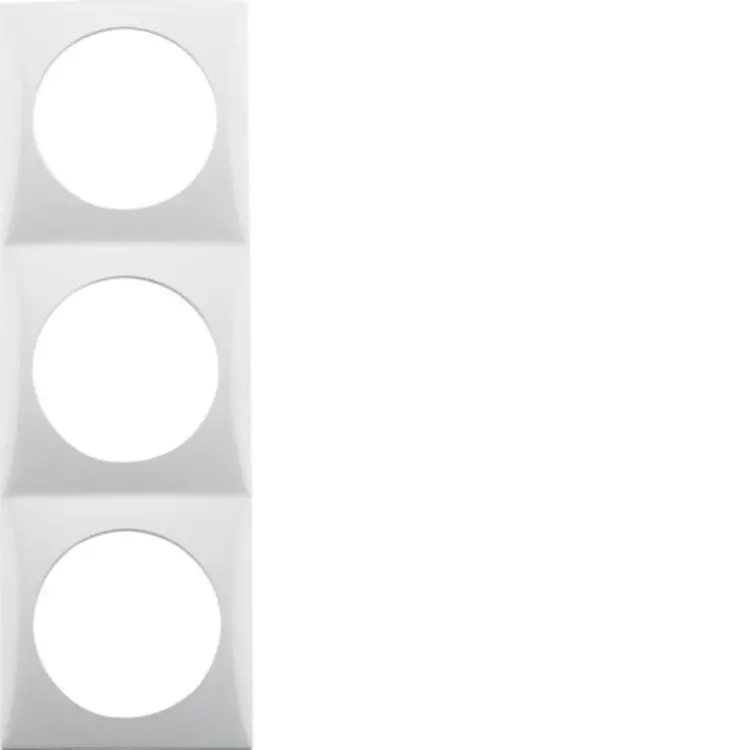 Hager Berker drievoudig afdekraam, afmetingen: 59,5 × 178,5 × 9 mm. Serie: Integro Flow, kleur: wit glans. Geschikt voor bijvoorbeeld (bad)meubels, caravans of boten. Niet geschikt voor standaard muurmontage in huis.