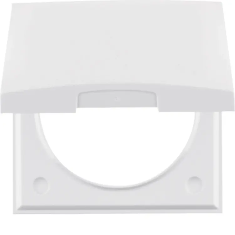 Hager Berker enkelvoudig afdekraam met klapdeksel, afmetingen: 59,5 × 59,5 × 17,9 mm. Serie: Integro Flow, kleur: wit mat. Geschikt voor bijvoorbeeld (bad)meubels, caravans of boten. Niet geschikt voor standaard muurmontage in huis.