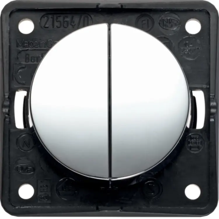 Hager Berker dubbele impulsdrukker met 2 x maakcontact. Serie: Integro Flow, kleur: glanzend chroom. Geschikt voor bijvoorbeeld (bad)meubels, caravans of boten. Niet geschikt voor standaard muurmontage in huis. Meer informatie »