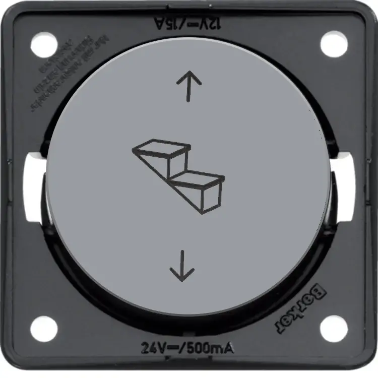 Hager Berker impulsdrukker voor elektrische opstap, o.a. geschikt voor campers. Met traptrede- en pijlsymbool. Serie: Integro Flow, kleur: grijs glans. Meer informatie »