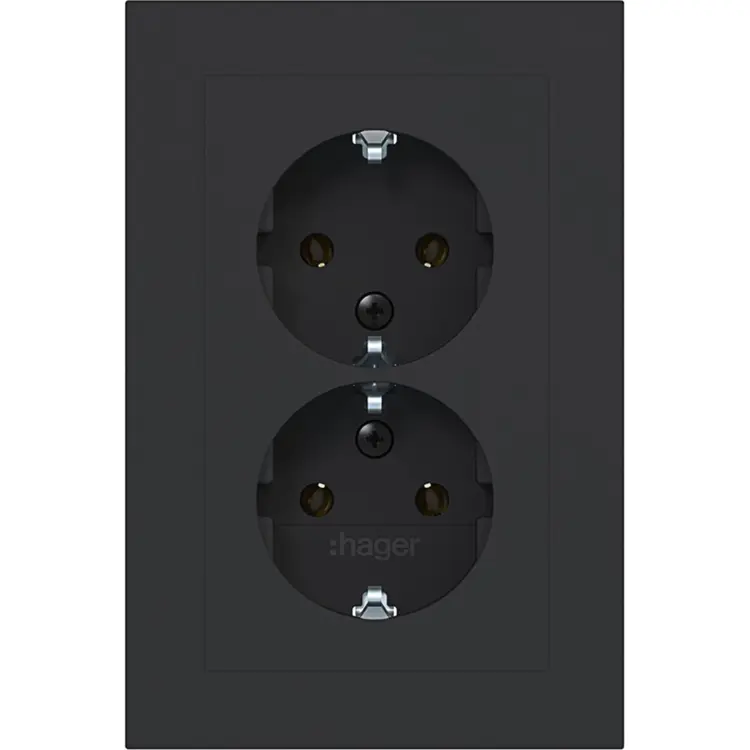 Hager Berker dubbele schuko-wcd vlak zw m (WAS2170BM)