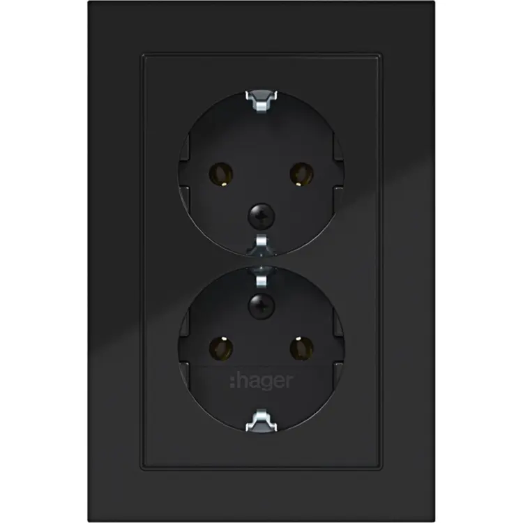Hager Berker dubbele schuko-wcd hoog zw gl (WAS2175BG)