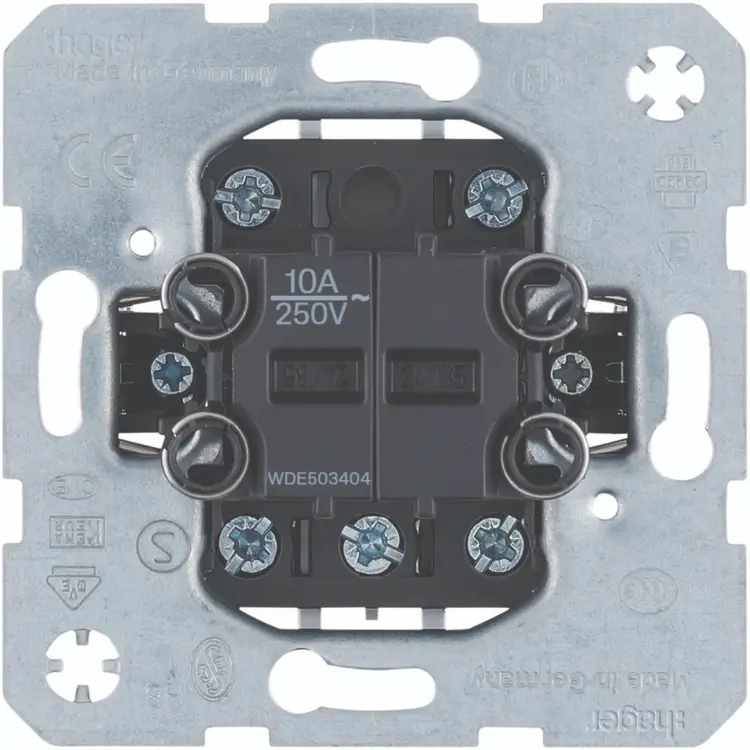Hager Berker tweevoudige impulsdrukker (groepen-serie-pulsdrukker) met vier maakcontacten, een gemeenschappelijke ingang en nulstand, 10 A.