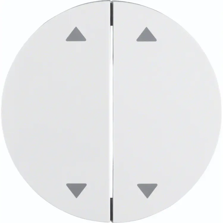 Hager Berker tweevoudige schakelwip (knop) voorzien van dubbele pijlsymbolen. Geschikt voor tweevoudige impulsdrukker 503404. Exclusief binnenwerk en afdekraam. Serie: R1/R3/R8, kleur: wit glans.