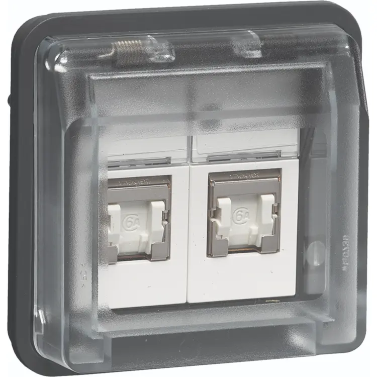 Hager Berker W1 data-aansluiting CAT6 RJ45 2-voudig bovendeel grijs (WNA227)