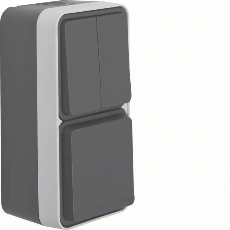 Hager Berker W1 combinatie serieschakelaar en wandcontactdoos kindveilig compleet grijs (WNC083)