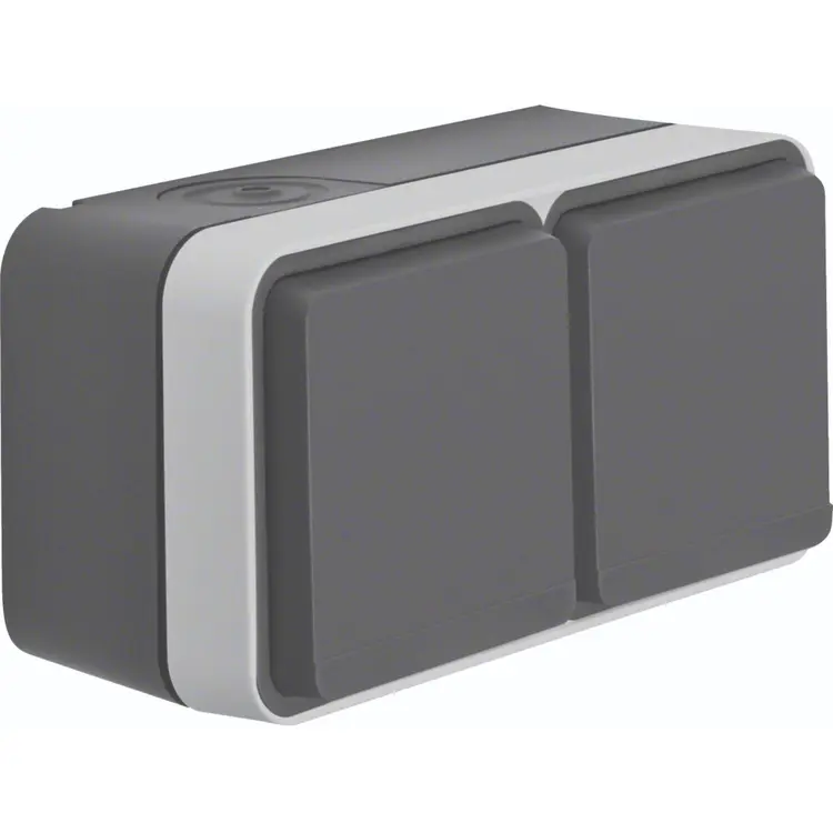 Hager Berker W1 grijs stopcontact 2-voudig randaarde met behuizing, horizontale montage. Met een kabelinvoer voor 2 geleiders en een kabelinvoer voor geleiders of buis. IP55 waarde voor gebruik buiten. Meer informatie »
