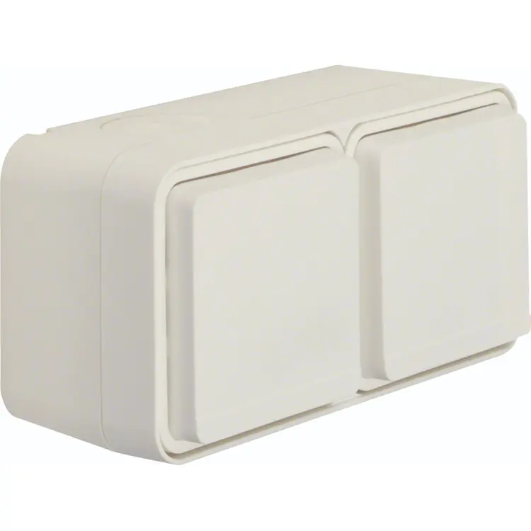 Hager Berker W1 wit stopcontact 2-voudig randaarde met behuizing, horizontale montage. Met een kabelinvoer voor 2 geleiders en een kabelinvoer voor geleiders of buis. IP55 waarde voor gebruik buiten. Meer informatie »