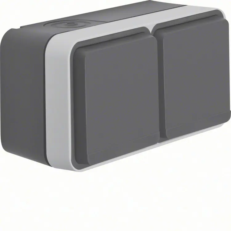 Hager Berker W1 grijs stopcontact 2-voudig randaarde met behuizing, horizontale montage. Met een kabelinvoer voor 2 geleiders en een kabelinvoer voor geleiders of buis. IP55 waarde voor gebruik buiten.Met kinderbeveiliging. Meer informatie »