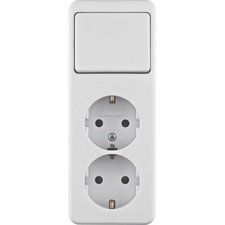 Hager Berker opbouw wisselschakelaar met wandcontactdoos 2-voudig randaarde wit (WVG5221PW)